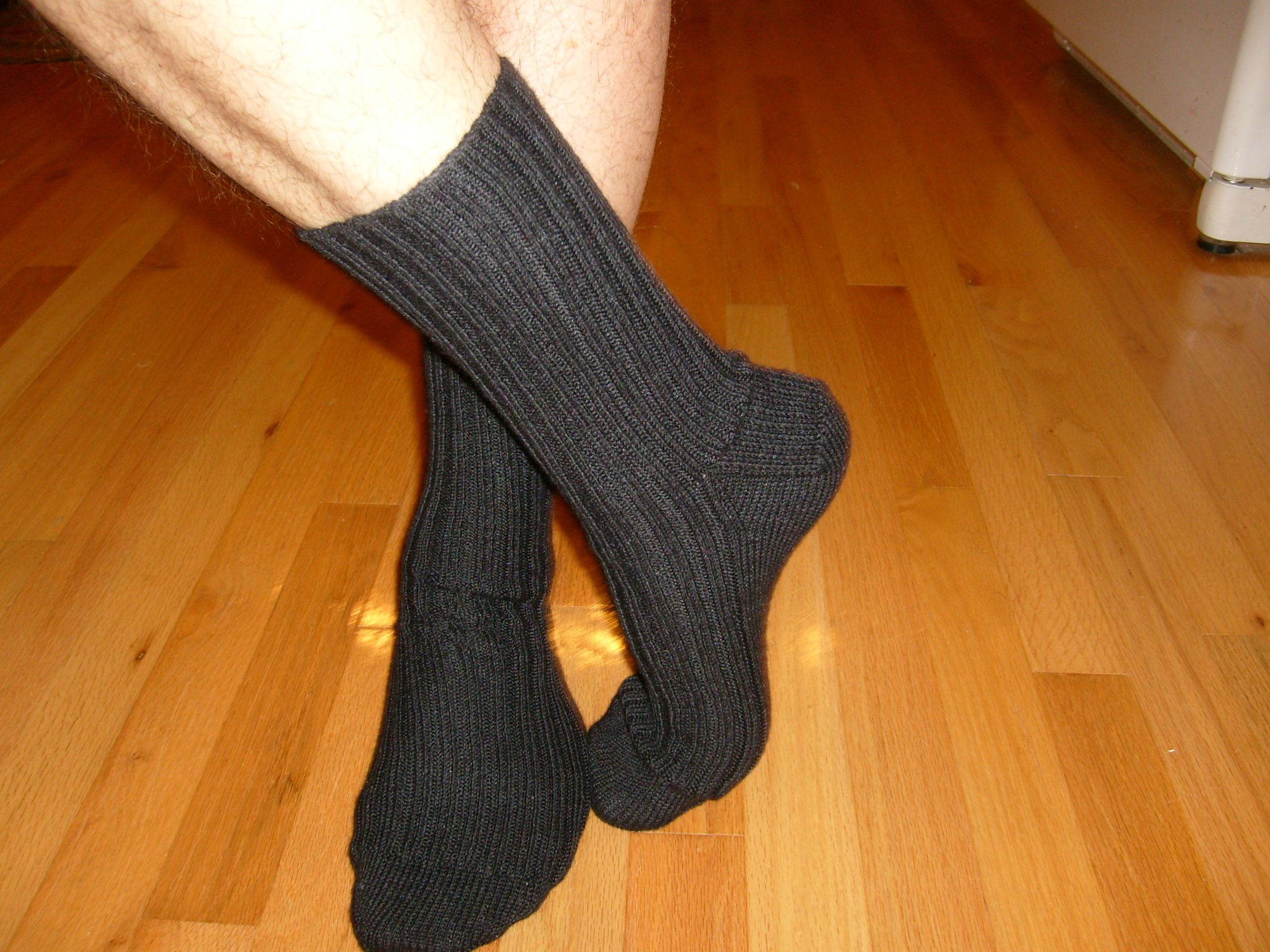 OK, so guys’ gifts aren’t so difficult to figure out.  I knitted a pair of socks from Regia Silk, graciously modeled by my husband.  Easy.