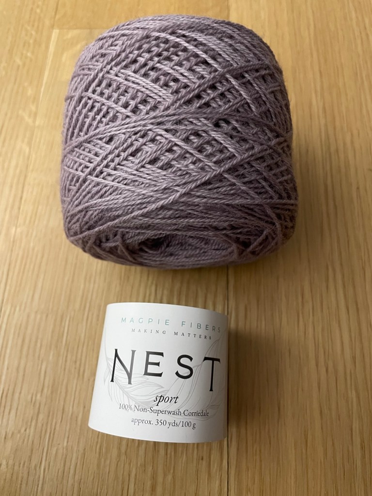 Magpie Fibers Nest, a 100% Corriedale Sport weight in a dusky lavender (from handworkslc.com )