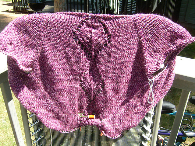 I just rarely knit for summer. I mean, really, a sweater in SUMMER? But of course, this is my Michigan upbringing coming in to play, because there are many lightweight and short-sleeve or sleeveless sweaters to wear. Add to that the fact that every place is over-air-conditioned, sweaters really ARE practical in the summer!