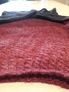 But lately I’ve begun to realize how beautiful the knit stitch looks as it travels along in a field of purl stitches. Texture. One of the features that makes this craft of “knitting” so beautiful. Perhaps I should call myself a “purler” instead of a “knitter”!