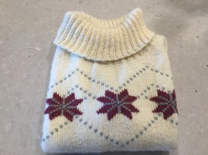 My knee-jerk reaction was to throw everything away. BUT…I let the sweater sit for a week, and while I thought of some options. Here’s what I came up with: